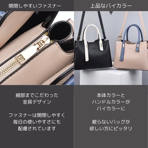 【大人女性のための“ちょうどいい”バッグ】 シンプルでありながら上質感漂うデザイン。柔らかなフォルムと落ち着いたバイカラーデザインで、どんなコーデにもすっと馴染みます。日常使いはもちろん、通勤やお出かけにもマッチする仕上がりです。